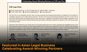 TnP Law Firm is one of the well-respected corporate law firms in Indonesia. We have long-standing client relationships with multinational and leading corporations in various industry sectors, financial institutions, and relevant government entities. We earn our reputation due to our commitment to outstanding service and professional excellence.